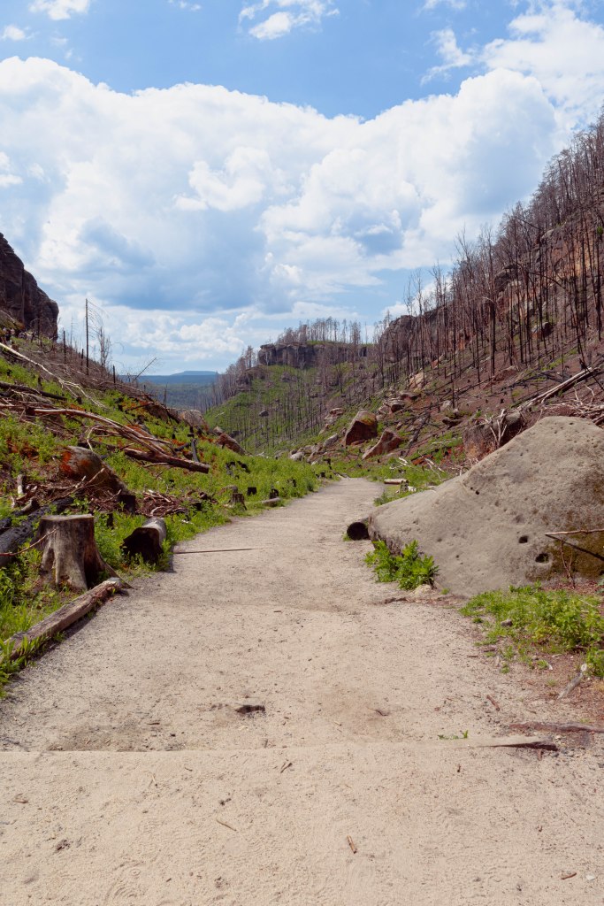Cestou hore uvidíš regeneráciu v priamom prenose, pretože na niektorých miestach už rastú prvé stromčeky. Cesta sa kľukatí až ku kamennej stavbe, odkiaľ je výhľad na tvoj cieľ ale keď sa dostaneš hore prichádza tu ešte zlatý klinec na záver.