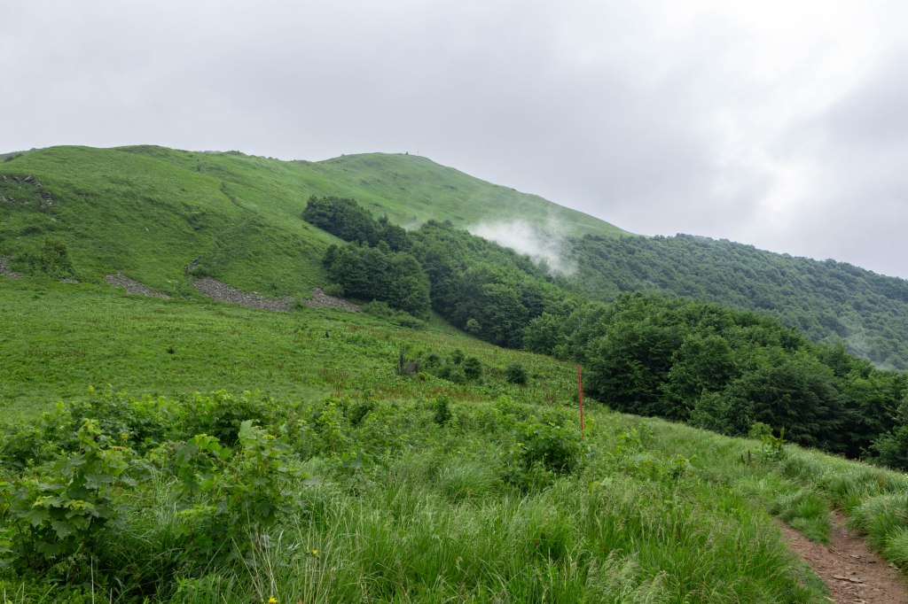Pred vrcholom som sa dostal z lesa na lúku, odkiaľ boli prvé výhľady na všetky svetové strany. A tu je tá pointa, celý hrebeň je úplne holý a bez lesa, za pekného počasia mi poskytol dychberúce výhľady! Okrem toho je aj veľká výhoda, že prichádzajúceho medveďa uvidíš oveľa skôr a máš dlhší čas na modlitbu.