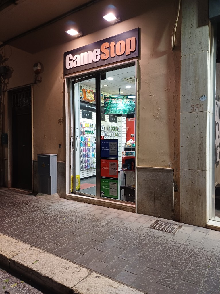 Alebo pre tých ktorí sa v čase najväčšej slávy chytili „investičnej príležitosti“, môžete sa pozrieť malého obchodíku menom Gamestop, ktorý nájdete rovnako na tejto ulici. Toto je skôr atrakcia pre tých ktorí sa venujú finančným trhom a zažili rast meme akcií v roku 2021.