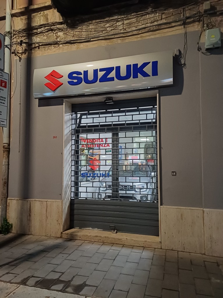 Trapani má takisto nádherné centrum – ulica nesie názov Via Giovanni Battista Fardella. Sem sa dá posadiť do jednej z kaviarní uprostred upršaného dňa alebo poprechádzať sa po módnych obchodoch, ktorých je na tejto ulici viac než dostatok. Našli sme tu napríklad najmenšiu predajňu Suzuki akú som kedy videl: